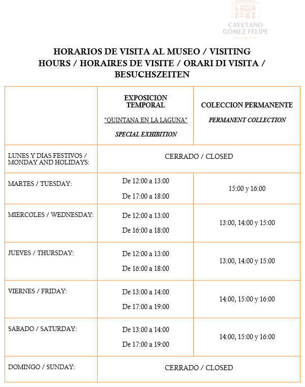 IMPORTANTE: la colección permanente no podrá visitarse los domingos. Se suspenden temporalmente las visitas para ese día.